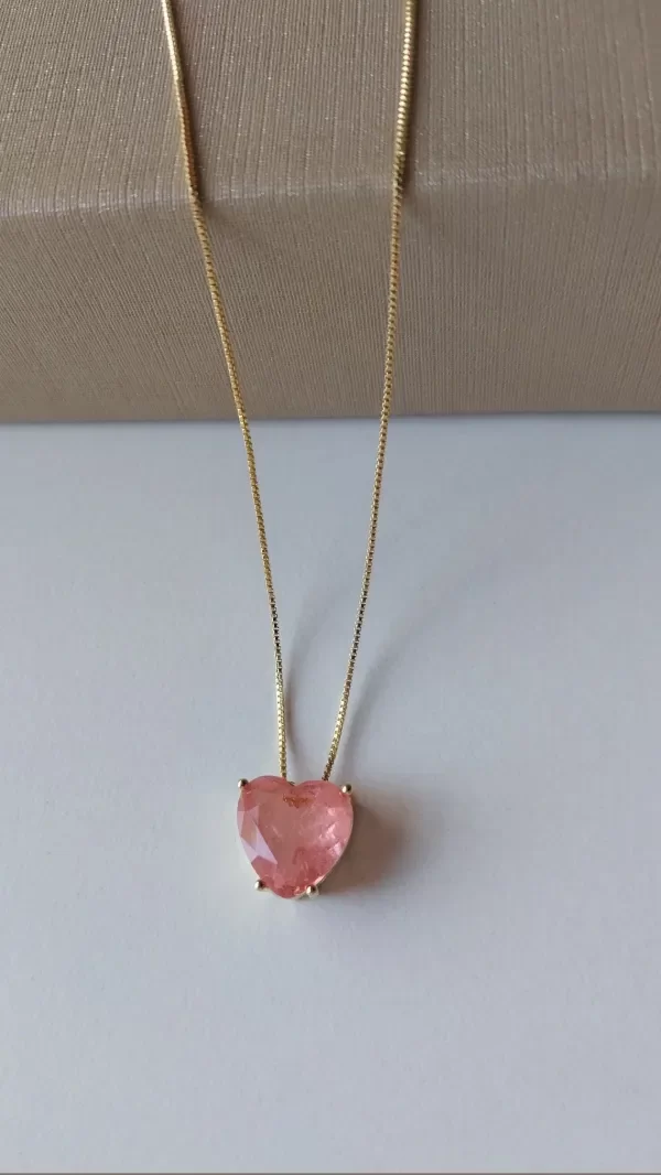 Conjunto corazón rosado laminado en oro 18k 45cm